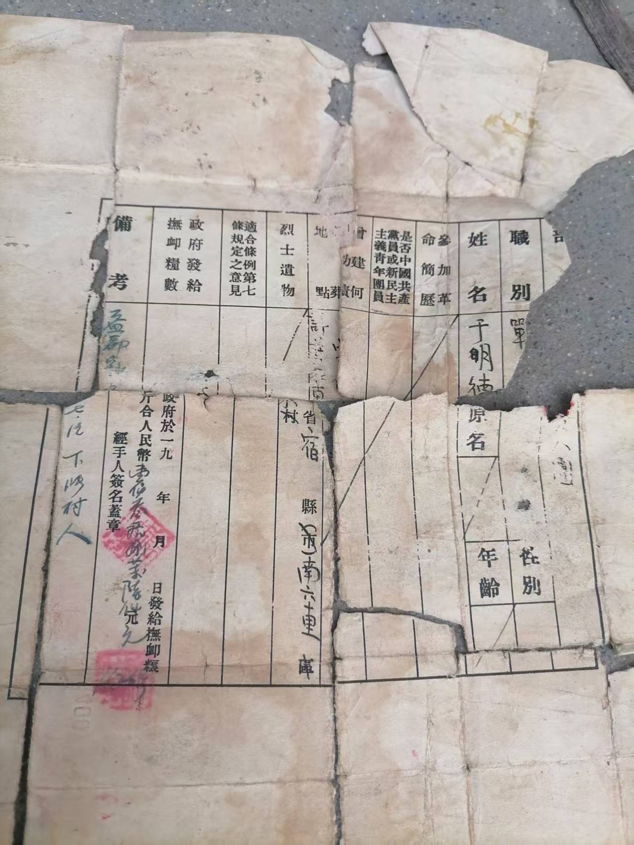 1929年出生1948年牺牲祖籍山东省潍坊市益都 于明德烈士静待家人644681