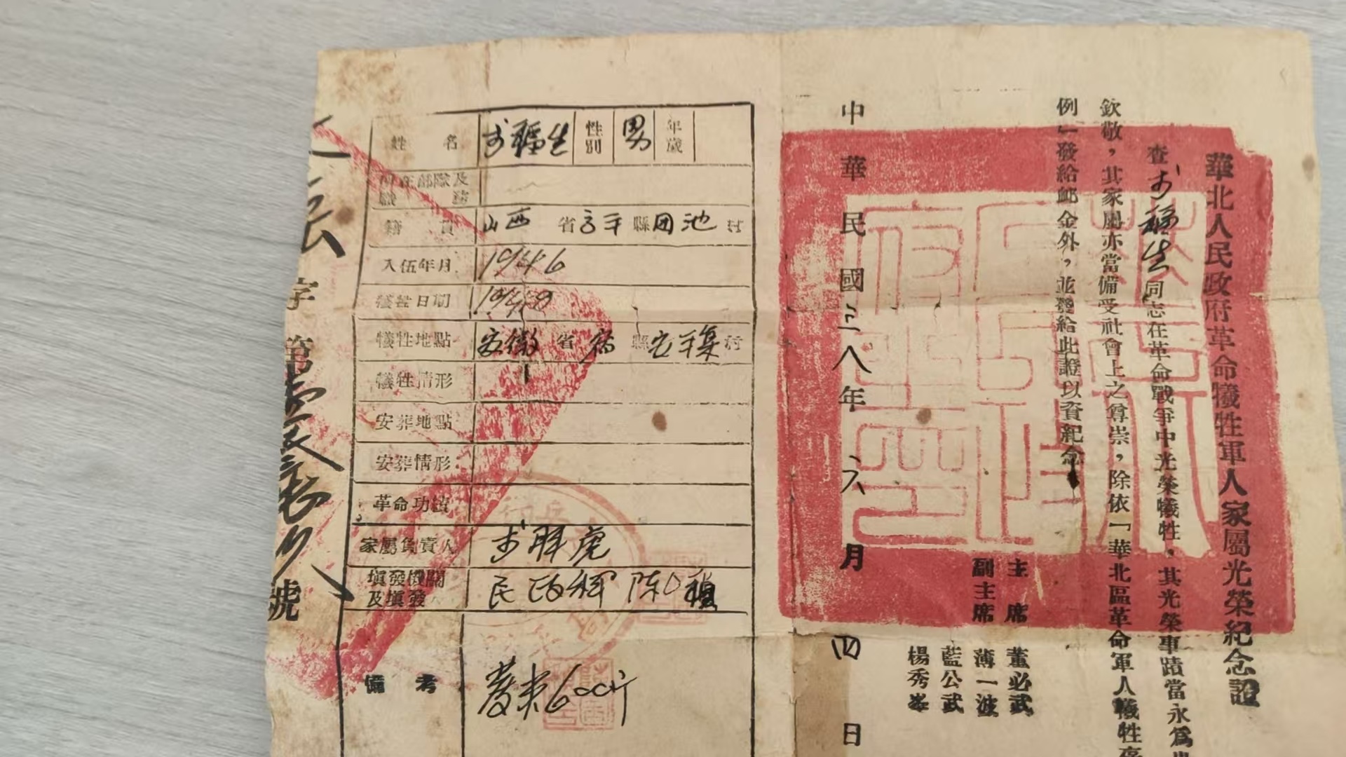 1925年出生1948年牺牲祖籍山西省晋城市高平县 李福生烈士静待家人732370